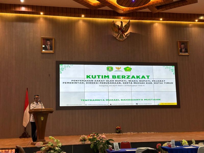 Sangatta – Pemerintah kabupaten (Pemkab) Kutai Timur (Kutim) Gelar Acara Kutim Berzakat yaitu penyerahan Zakat Oleh Bupati, Wakil Bupati, Pejabat Pemerintah, Direksi Perusahaan Serta Muzaki Kabupaten Kutai Timur di Ruang Meranti Kantor Bupati Kawasan Bukit Pelangi Sangatta, Rabu (3/4/2024)