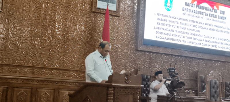 Kutai Timur – Kepala Badan Keuangan Dan Aset Daerah (BPKAD) Kabupaten Kutai Timur Ade Achmad Yulkafilah, menyampaikan tanggapan pemerintah daerah atas pandangan fraksi terhadap Nota keuangan Pemerintah Kabupaten Kutai Timur mengenai Rancangan  Anggaran Pendapatan dan Belanja Daerah (APBD) Tahun Anggaran 2026, dalam Rapat Paripurna yang di laksanakan di Gedung DPRD Kutim, Ade mengatakan bahwa pandangan dari masing-masing fraksi merupakan masukan penting bagi pemerintah dalam menyempurnakan rancangan anggaran.